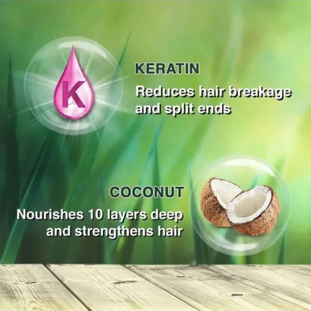 - غني ببروتين الكيراتين الذي يعزز قوة الشعر من الجذور حتى الأطراف.
