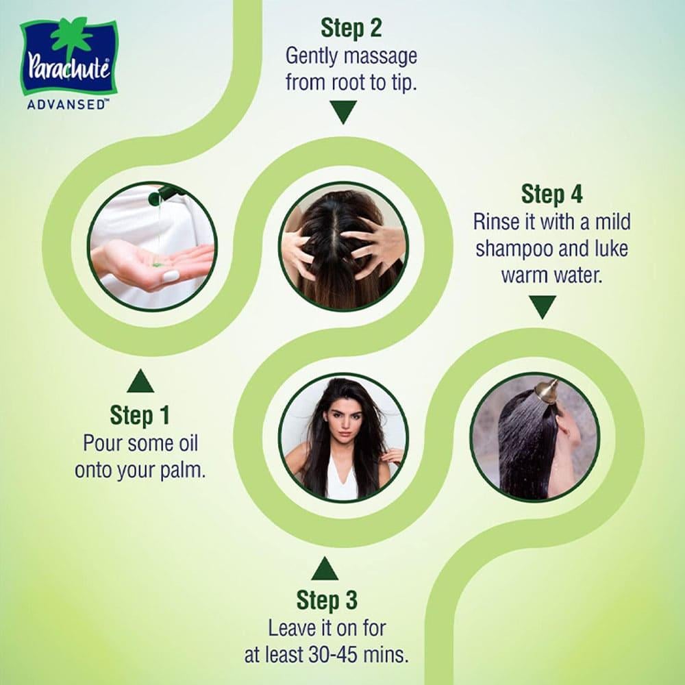 - باراشوت املا زيت الشعر مع جوز الهند واللوز يوفر تغذية عميقة لشعر صحي وطويل وداكن.