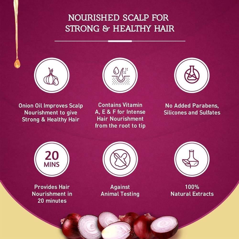 - يحتوي على مكونات طبيعية مثل مستخلص البصل، مما يجعله آمنًا للاستخدام المنتظم.