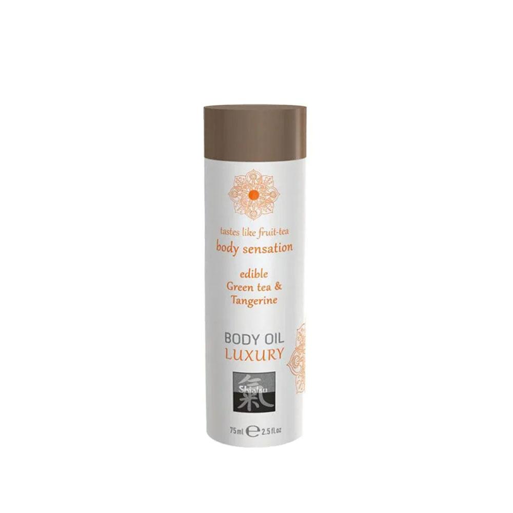 الوصف : زيت مساج بطعم الشاي الأخضر والماندرين