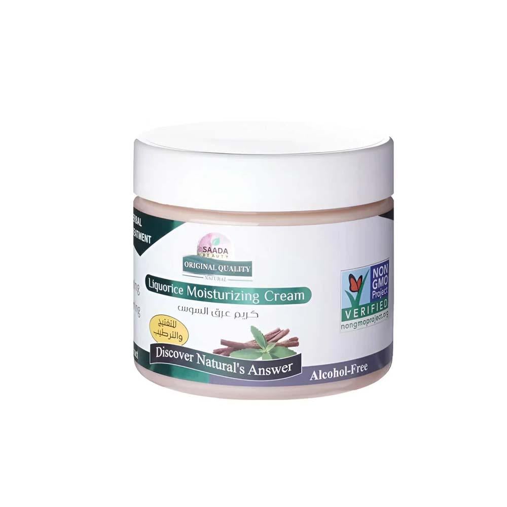 سعادة بيوتي كريم ترطيب عرق السوس يساعد عرق السوس في ترطيب البشرة الجافة والمتضررة كما توفر تغذية فورية للمناطق الجافة مثل الاكواع والركب بالاضافة الى الاقدام يتميز كريم عرق السوس من سعادة بيوتي بقوام غني وكريمي مما يسهل عملية امتصاصه بكل سهولة كما انه مثالي للاستخدام اليومي.