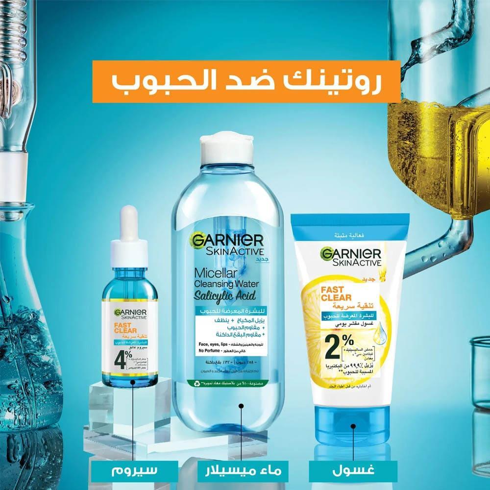 غارنييه سكين أكتيف “تنقية سريعة” غسول مقشر يومي مصمم خصيصًا للعناية بالبشرة المعرضة لحب الشباب. يحتوي هذا الغسول على تركيبة فعّالة تجمع بين التنظيف العميق والتقشير اللطيف لإزالة الشوائب والزيوت الزائدة من البشرة. يحتوي على مكونات مثل حمض الساليسيليك الذي يعمل على محاربة حب الشباب ومنع ظهوره من جديد. يساعد الغسول أيضًا في تقليل الرؤوس السوداء وتنقية المسام، مما يمنح البشرة مظهرًا أكثر نقاءً وانتعاشًا مع كل استخدام.