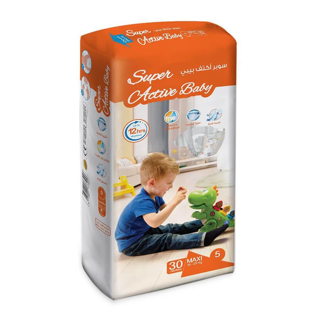 سوبر أكتف بيبي حفاضات أطفال ماكسي عمر 5 سنوات – 30 فوطة