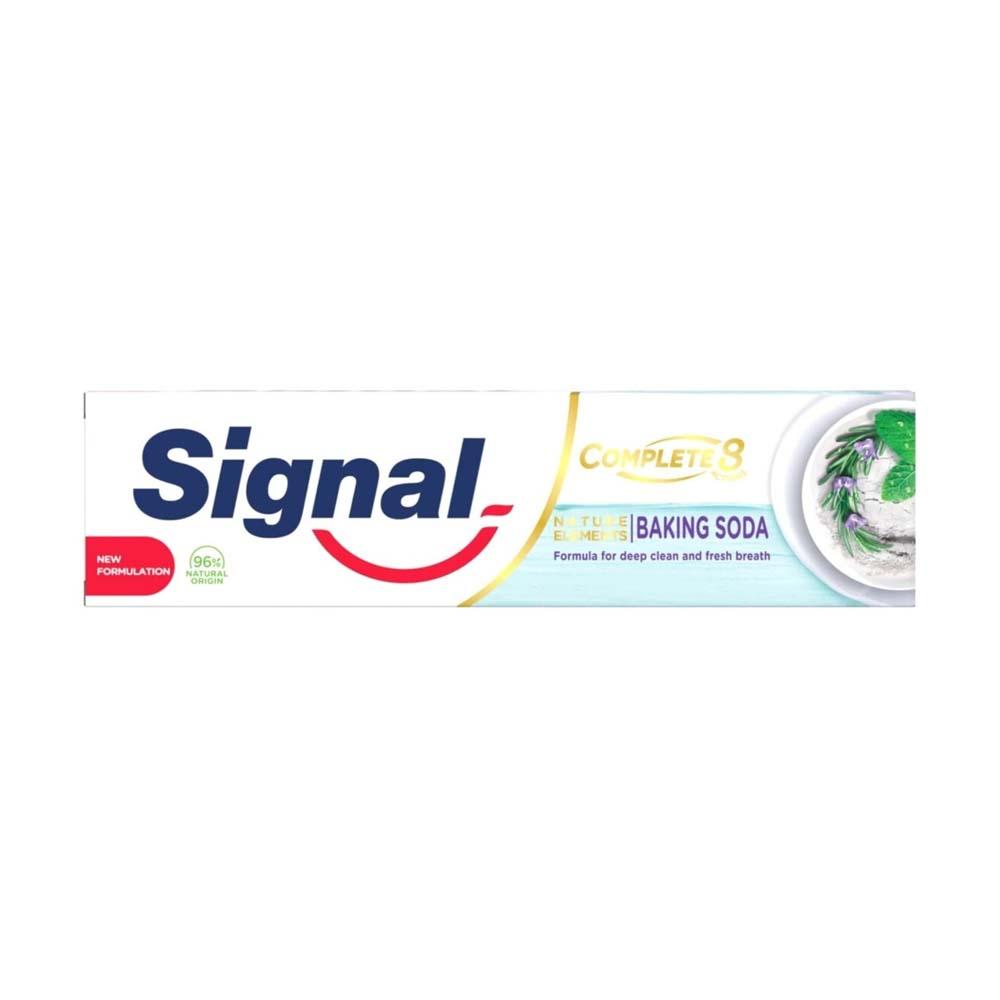 الوصف:معجون الأسنان “سيجنال المتكامل 8 بيكنج صودا” مبتكر يجمع بين فوائد عديدة للعناية الفعّالة بالفم والأسنان. يحتوي على تركيبة فريدة تجمع بين البيكنج صودا ومكونات أخرى لتنظيف وتبييض الأسنان وتحسين صحة اللثةالفوائد والمميزات:يحتوي على حبيبات البيكنج صودا التي تساعد في إزالة البقع والبلاك وتنظيف الأسنان بعمق.يساعد على تبييض الأسنان واستعادة إشراقتها الطبيعية دون التسبب في التآكل.تركيبته تحتوي على مكونات تعمل على تقوية اللثة والحفاظ على صحتها.يحتوي على مكونات تساعد في منع تكوّن التسوس وحماية الأسنان.يساعد في منع رائحة الفم الكريهة وترك شعورًا منعشًا طوال اليوم.يترك شعورًا منعشًا ومنظفًا في الفم بفضل تركيبته الفريدة.يوفر حماية شاملة للفم والأسنان ويساعد في الحفاظ على صحتهما بشكل عام.طريقة الاستعمال:ضع كمية مناسبة من معجون الأسنان على فرشاة الأسنان الجافة.قم بتنظيف الأسنان واللثة بلطف بحركات دائرية لمدة لا تقل عن دقيقتين.اشطف الفم جيدًا بالماء.يُستخدم مرتين يوميًا، صباحًا ومساءً، للحصول على أفضل النتائج.التحذيرات:يحفظ بعيدًا عن متناول الأطفال.تجنب ملامسة العينين، في حالة الاتصال بالعينين اشطفهما جيدًا بالماء.يحفظ في مكان بارد وجاف.