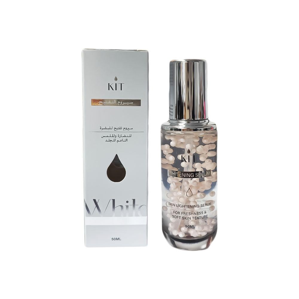 كيت سيروم التفتيح مكون من تركيبة ذات فعالية في تفتيح لون البشرة وإعطائها مظهر الجمال والنضارة بمعدل أمان عالي لإحتوائه علي خلاصة النباتات الطبيعية بالإضافة إلي اكتساب الجلد الملمس الناعم.