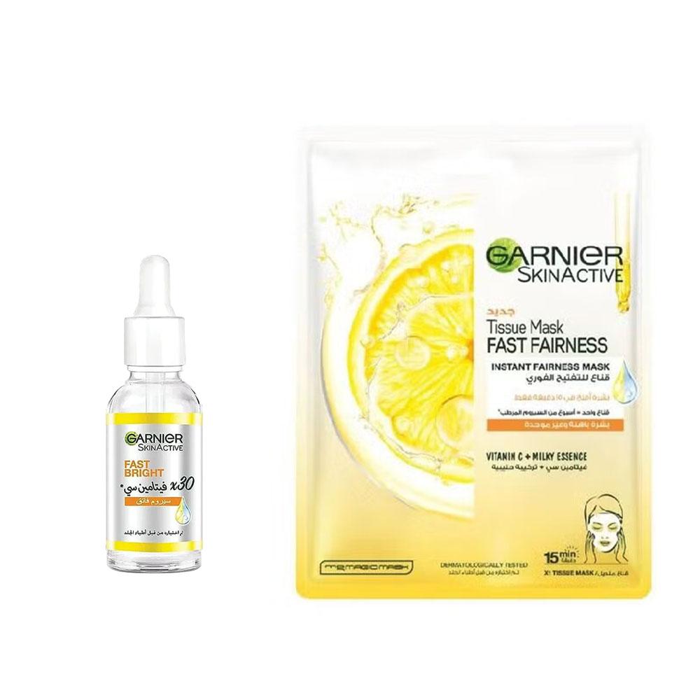 سيروم بفيتامين سي مع قناع للإشراقة الفورية للوجه هو منتج متكامل يهدف إلى تحسين إشراقة البشرة وتوفير ترطيب فعّال.