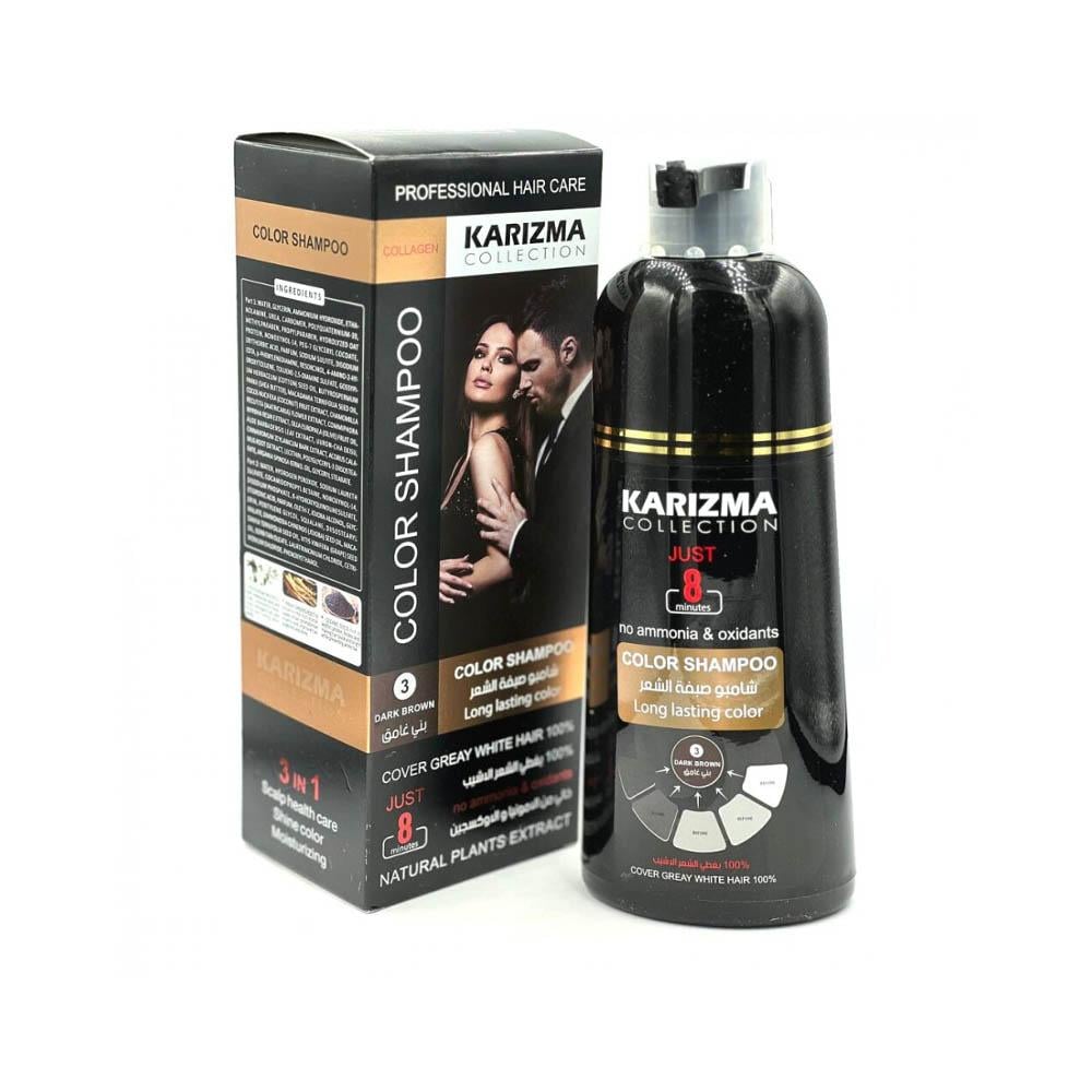 كاريزما كولكشن شامبو لصبغ للشعر باللون البني الغامق يعطي شعرك لمعانا ومظهراً صحياً و تغطيه للشيب 100 % خلال 8 دقائق فقط. كاريزما كولكشن شامبو لصبغ للشعر الابيض بجودة عالية و تركيبة طبيعية فاخرة، يغطي الشعر الأشيب بنسبة 100%. شامبو صبغة الشعر من كاريزما كولكشن يحتوي على تركيبة من النتباتات الطبيعية ليعطي لمعاناً لشعرك ويمنحك الجمال الذي يليق بك. كاريزما كولكشن شامبو صبغة الشعر باللون البني الغامق خالي من الأمونيا والأوكسجين. يمنحك شامبو صبغة الشعر من كاريزما كولكشن خصلات شعر صحية ولون لامع وشعر رطب وناعم.
