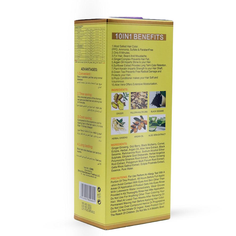 • موفر للوقت : كمية صغيرة من الشامبو تعطيك شعرا أسود اللون لامعاً خلال 30 دقيقة.