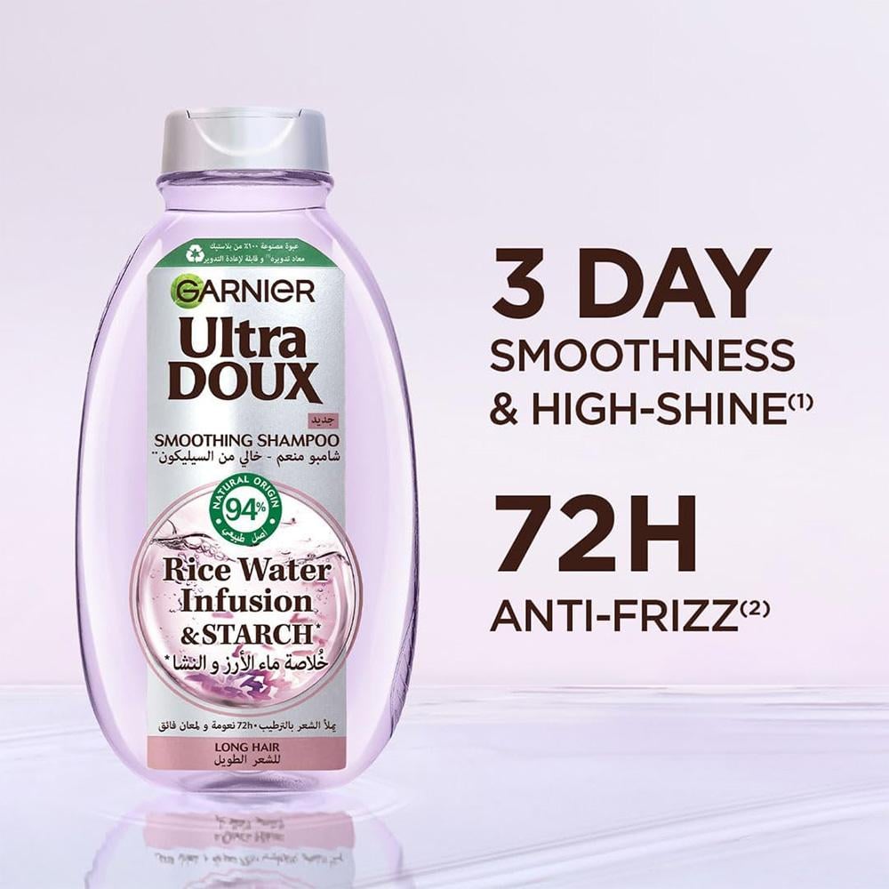 غارنييه ألترا دوكس شامبو منعم خالي من السيليكون بخلاصة ماء الأرز والنشا – 200 مل