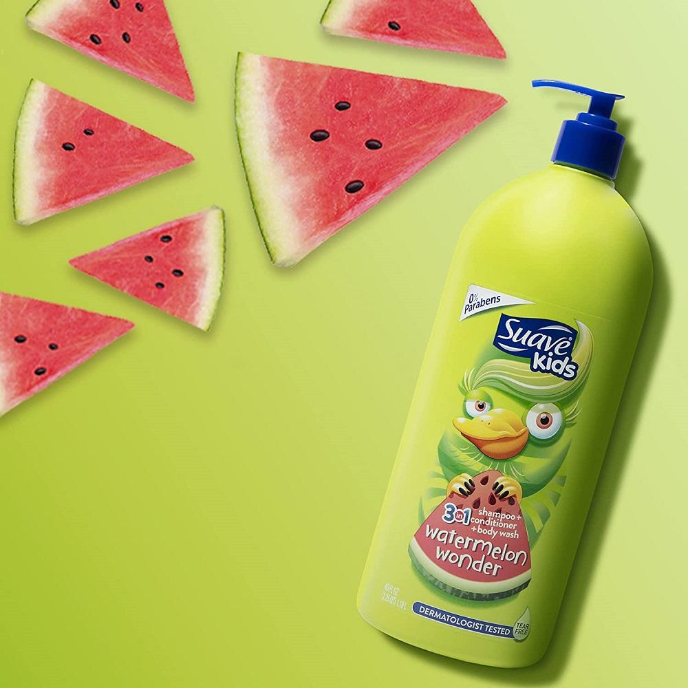 - الشامبو اللطيف ينظف وينعش شعر الأطفال ، بينما يساعد البلسم على تقليل الأطراف المتقصفة والتخلص من التشابك القاسي لشعر ناعم وسهل التصفيف. يعمل غسول الجسم على تنعيم البشرة وتنعيمها ، بينما تترك رائحة البطيخ شعر الأطفال وجلدهم برائحة منتعشة وتبدو نظيفة حتى الاستحمام التالي.
