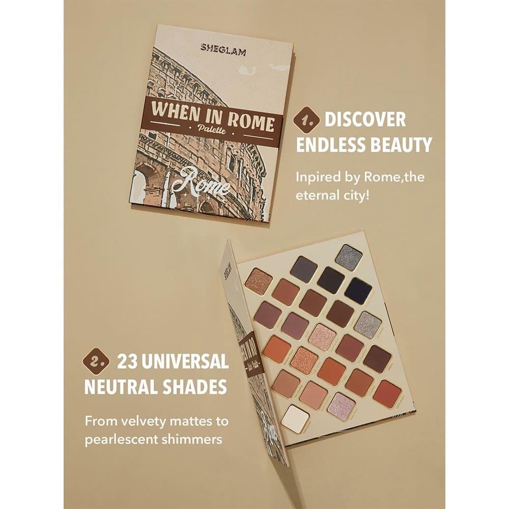باليت شيجلام وين إن روم هو مجموعة رائعة ومتنوعة من 23 درجة من ظلال العيون المستوحاة من جمال وأناقة مدينة روما. يحتوي هذا الباليت على مزيج من الظلال المات، اللامعة، والمعدنية، مما يجعله مناسبًا لإنشاء إطلالات عيون متنوعة، سواء كانت ناعمة ومناسبة للنهار أو دراماتيكية للسهرات. تحتوي درجات الألوان على مجموعة واسعة من الألوان الوردية، الدافئة، والرمادية، مما يوفر لك إمكانيات متعددة لمكياج عيون مميز. تركيبة الظلال غنية وعالية الصبغة، مما يضمن لك نتائج قوية وثابتة طوال اليوم.