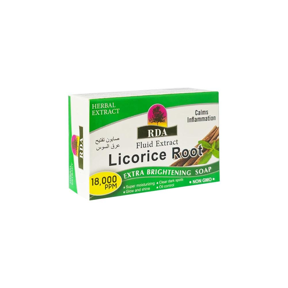 ار دي ايه صابون تفتيح عرق السوسصابون طبيعي مصمم خصيصًا لتفتيح البشرة باستخدام فوائد عرق السوس. يحتوي على مستخلصات عرق السوس المعروفة بقدرتها على تقليل التصبغات وتوحيد لون البشرة.
