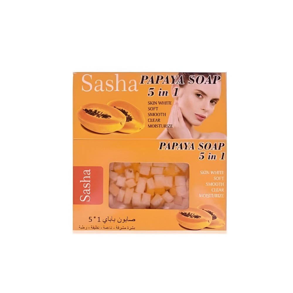 صابون ساشا بالبابايا 5 في 1 تركيبة متقدمة للعناية المتكاملة بالبشرة، مصمم ليمنحك بشرة نقية، مشرقة، وناعمة. يحتوي على مستخلصات البابايا الطبيعية المعروفة بخصائصها في تقشير البشرة وتفتيح لونها بفعالية، إضافة إلى مجموعة من العناصر المغذية التي تعزز صحة البشرة وتجعلها متألقة. يعمل هذا الصابون على تنظيف البشرة بعمق، إزالة الخلايا الميتة، وتوحيد لون البشرة ليكشف عن نضارتها الطبيعية.