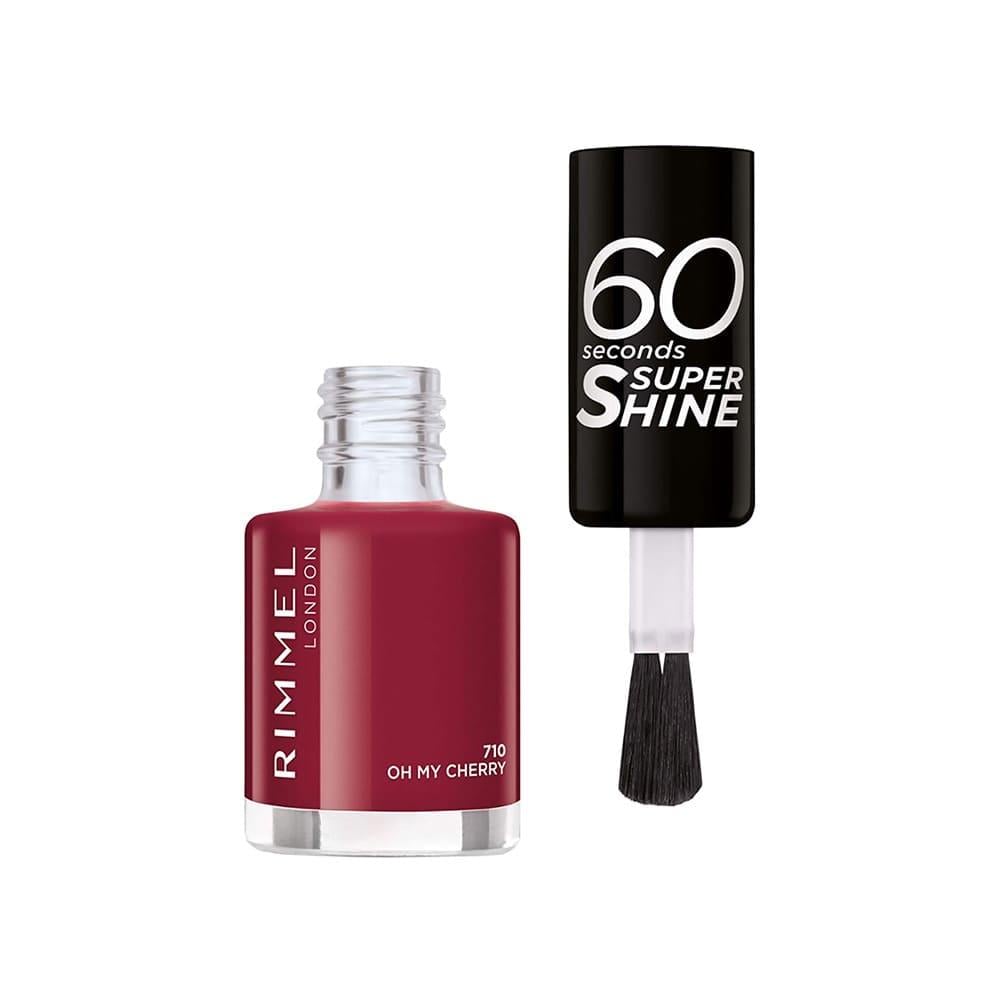 ريميل لندن طلاء أظافر 60 سكندز سوبر شاين باللون 710 أوه ماي تشيري يتميز بتركيبة تجف بسرعة وتمنح لمعانًا فائقًا.
