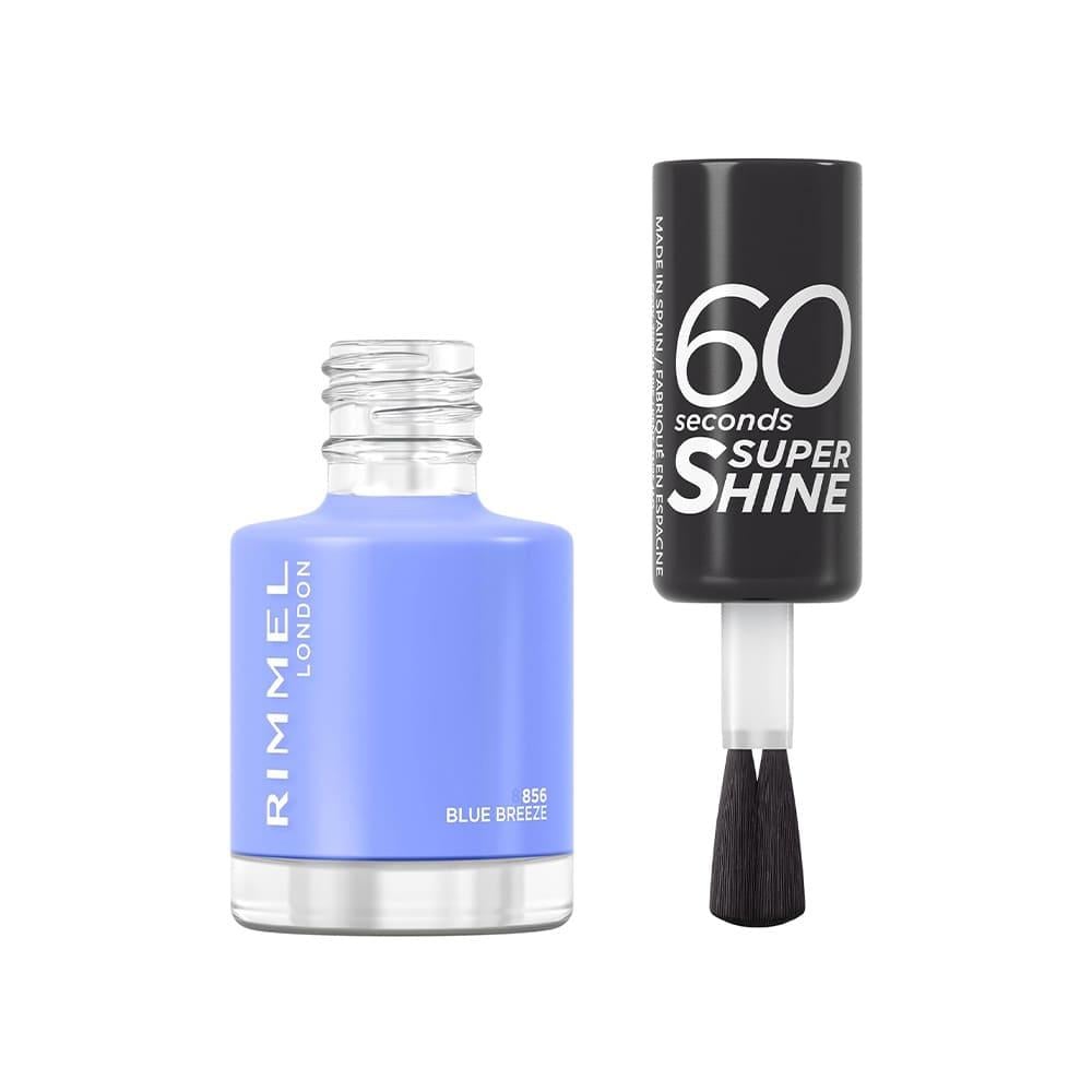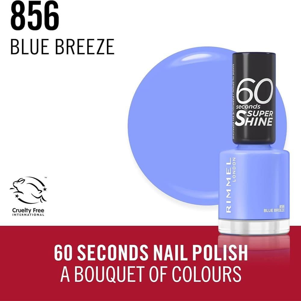 ريميل لندن طلاء أظافر 60 سكندز سوبر شاين باللون 856 بلو بريز يتميز بتركيبة تجف بسرعة وتمنح لمعانًا فائقًا.