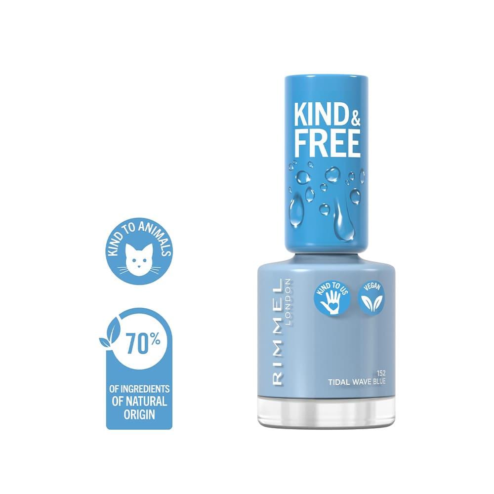 ريميل لندن كايند آند فري طلاء الأظافر رقم 152 تيدال ويف بلو هو منتج معروف بلونه الزاهي وتركيبته اللطيفة على الأظافر. ينتمي إلى مجموعة كايند آند فري التي تهدف إلى أن تكون صديقة للبيئة وخالية من مكونات مثل الفورمالدهايد وديبوتيل فثالات (DBP) والتولوين والكافور والراتنج الفورمالدهيدي.