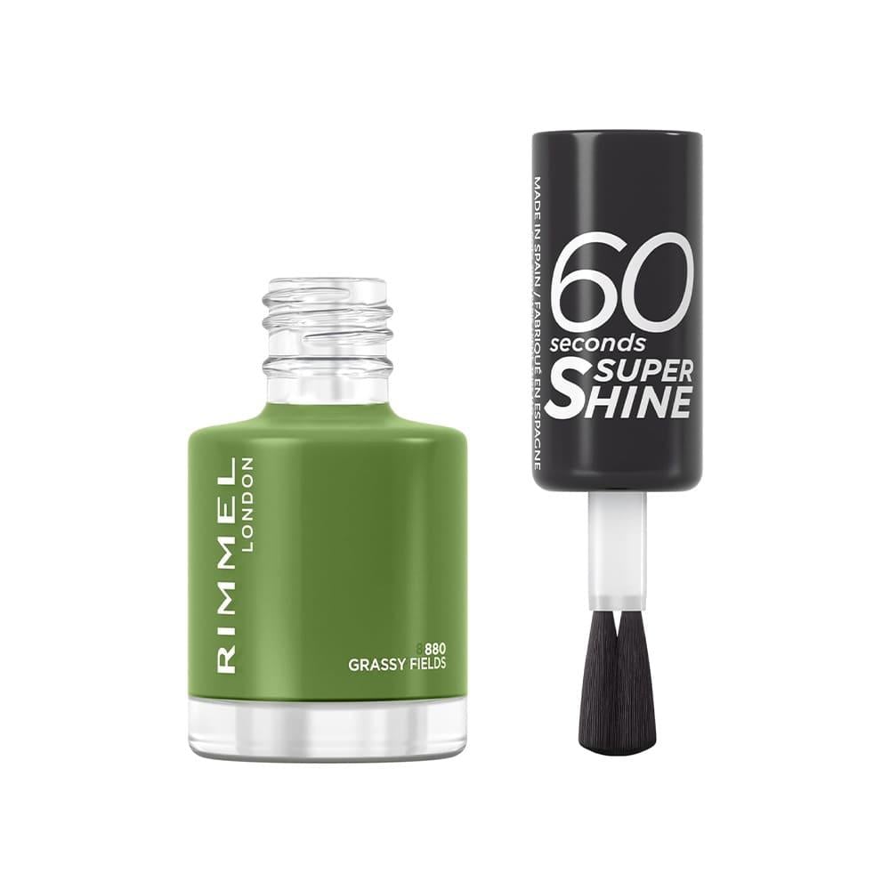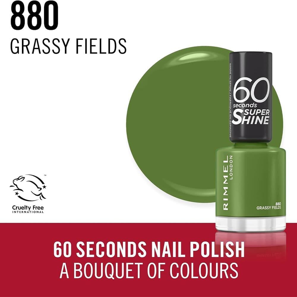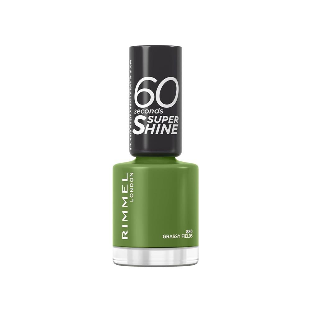 ريميل لندن طلاء أظافر 60 سكندز سوبر شاين باللون 880 جراسي فيلدز يتميز بتركيبة تجف بسرعة وتمنح لمعانًا فائقًا.
