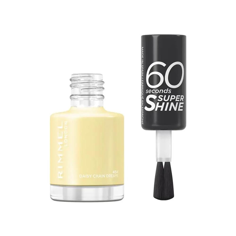 ريميل لندن طلاء أظافر 60 سكندز سوبر شاين باللون 454 ديزي تشين دريمز يتميز بتركيبة تجف بسرعة وتمنح لمعانًا فائقًا.