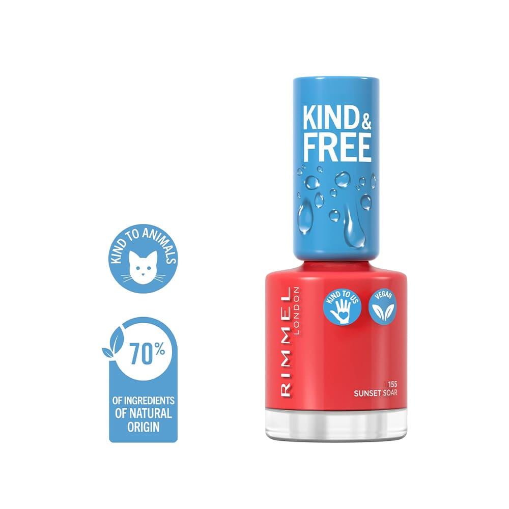 ريميل لندن كايند آند فري طلاء أظافر رقم 155 صن سيت سور هو جزء من مجموعة كايند آند فري، التي تتميز بتركيباتها الصديقة للبيئة والنباتية والخالية من التجارب على الحيوانات. لون صن سيت سور عادة ما يكون لونًا دافئًا وجذابًا، مثالي لإطلالة منعشة وجذابة للأظافر.