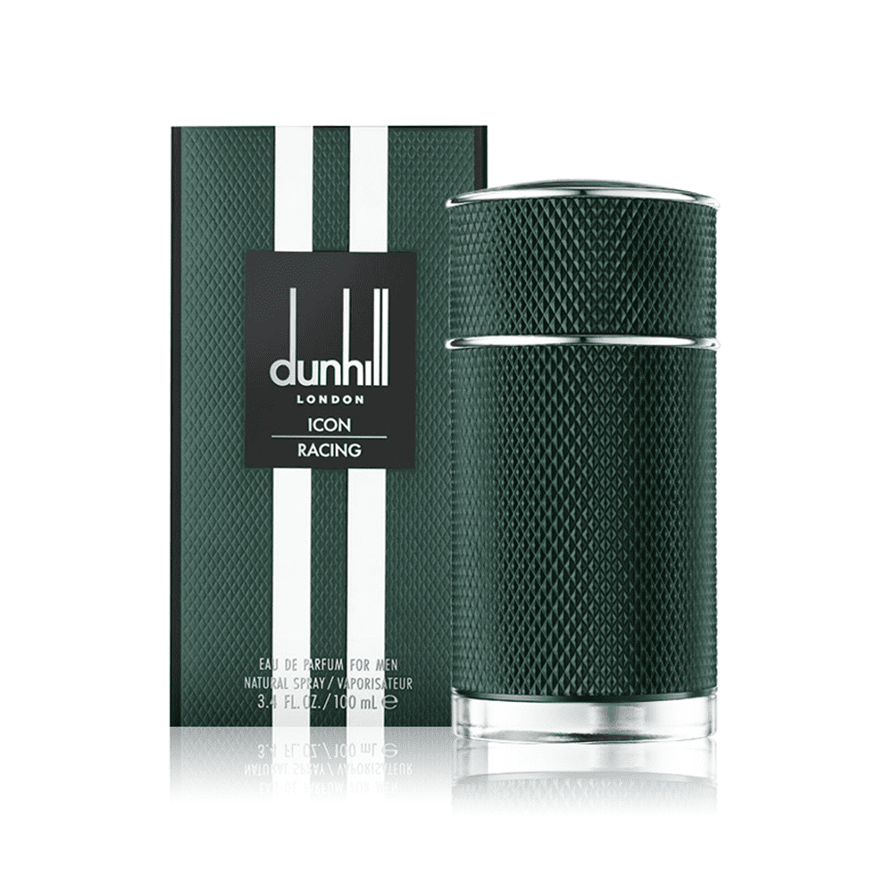 تم إصدار عطر دنهل أيكون رايسينغ للرجال عام 2017، وهو عطر مثير يمثّل إثارة وسرعة السباق البريطاني. تتميز النوتات العليا للكولونيا بروائح الهال، والغريب فروت، والبرغموت. ثم تنتقل إلى النوتات المتوسطة المكوّنة من الخزامى، والفلفل، وزهر البرتقال. تُضفي قاعدة العطر لمسة معقّدة، مع لمسات خفيفة من المسك، ونجيل الهند، وخشب الغاياك. تثبت رائحة الكولونيا بشكلٍ معتدل، لذا فهي تدوم في معظم المناسبات دون رشّها في كل مناسبة، كما تحتوي على سيلاج معتدل، لذا فمن المؤكّد أن تجذب الرائحة الناس من حولك، ولكنها لن تملأ الغرفة برائحة طاغية.
