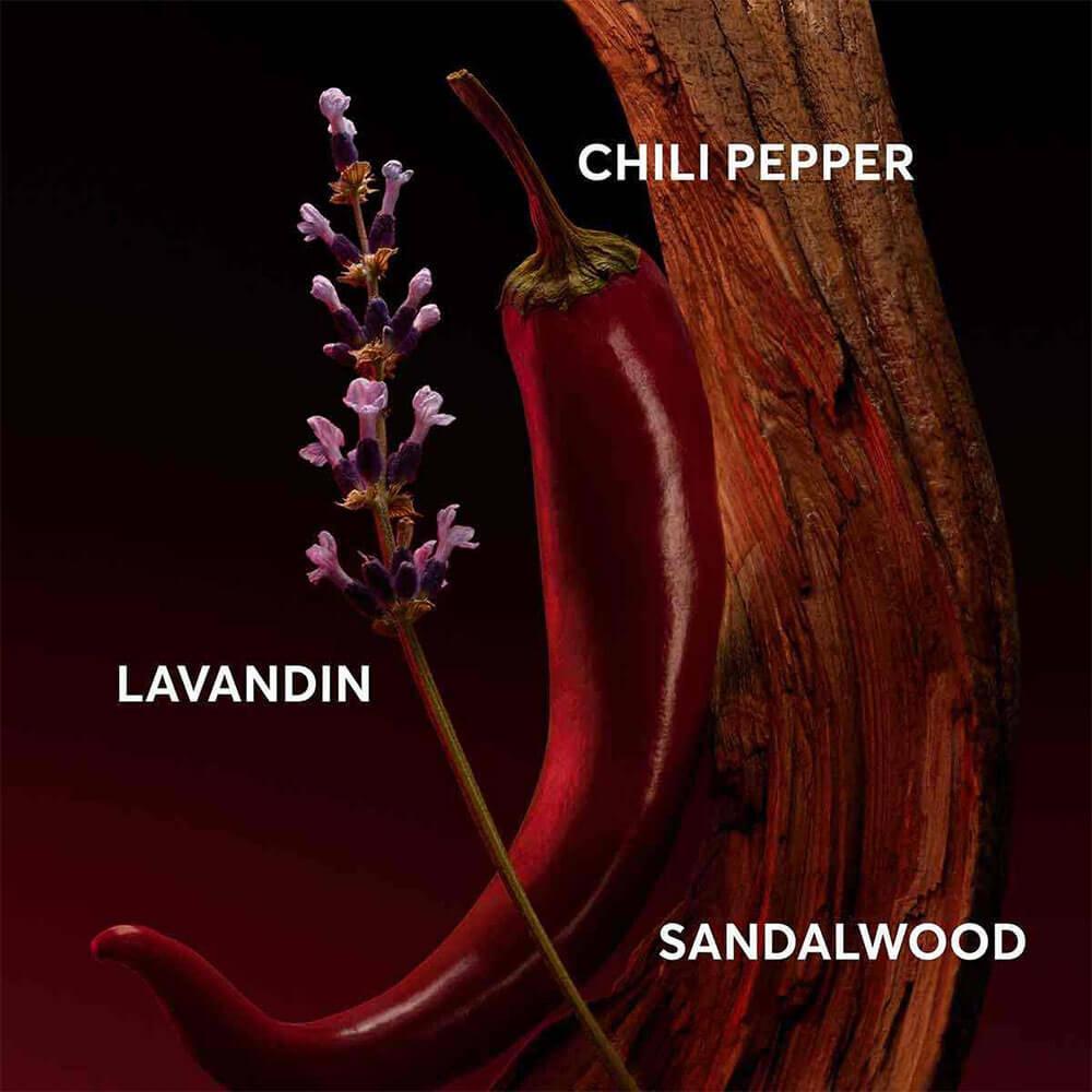 مقدمة العطر: الفلفل الأحمر الحار، الزنجبيل، البرغموت.