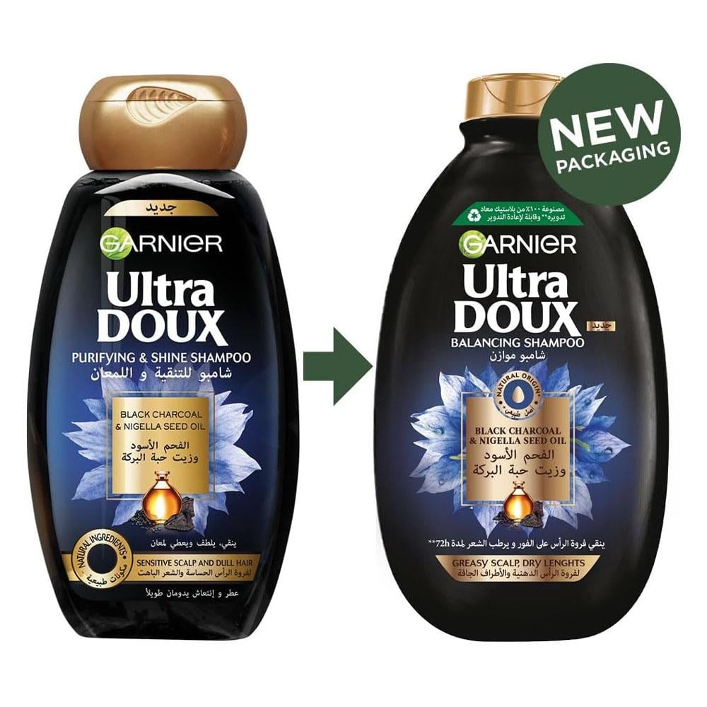 شامبو الترا دوكس للتنقية واللمعان بخلاصة الفحم الأسود وزيت حبة البركة من غارنييه وهو وصفة حقيقية لتنقية الشعر وتعزيز لمعان الشعر الباهت. يجمع بين زيت حبة البركة، المعروفة أيضًا باسم البذور السوداء، وهو مكون طبيعي غني معروف بخصائصه المهدئة لفروة الرأس واستعادة لمعان الشعر، إلى جانب الفحم، المعروف بخصائصه المنقية، كل ذلك في تركيبة كريمية رائعة لا ترهق شعرك.