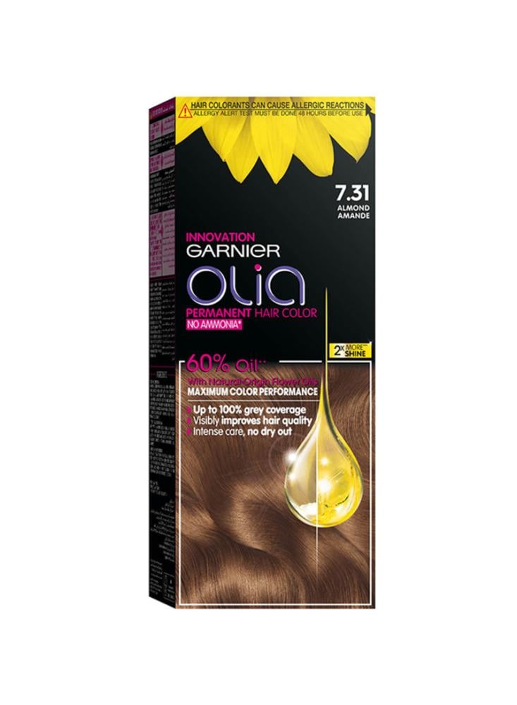 غارنييه أوليا هي صبغة شعر مبتكرة تعتمد على تقنية متطورة تحتوي على تركيبة غنية بالزيوت الطبيعية بنسبة 60٪، مثل زيت زهرة عباد الشمس والأفوكادو والزيتون. تم تصميم الصبغة لتوفير تجربة تلوين لطيفة وخالية من الأمونيا، مما يمنح شعرك لونًا غنيًا ولامعًا بدون رائحة كيميائية مزعجة. تعزز الصبغة من صحة الشعر وتجعل ملمسه ناعمًا وحيويًا بعد الاستخدام.