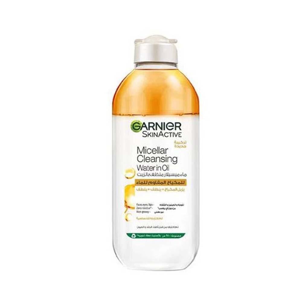 ماء ميسيلار منظف بالزيت من غارنييه مبتكر يجمع بين فوائد الماء الميسيلار والزيت لتنظيف البشرة بعمق وإزالة المكياج والشوائب بلطف يتميز بتركيبة غنية بالزيوت التي تذوب المكياج حتى الثقيل وتزيله بسهولة دون تجفيف البشرة.