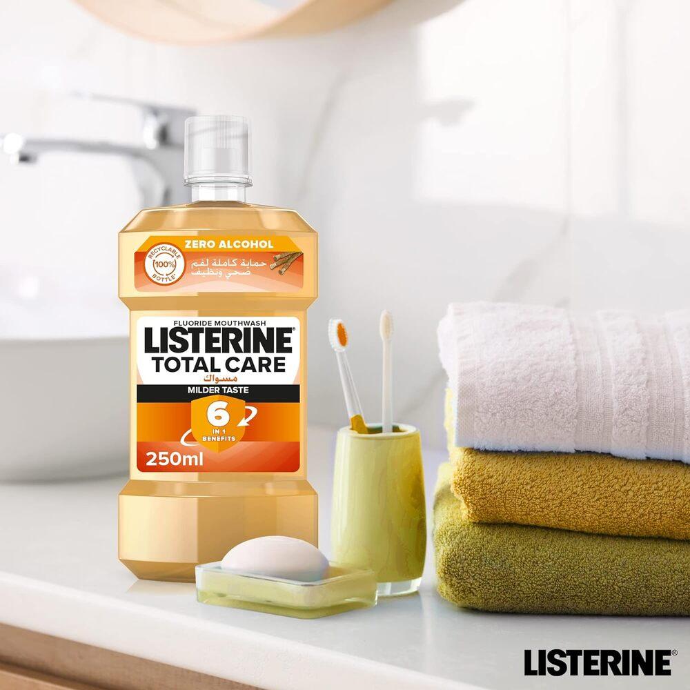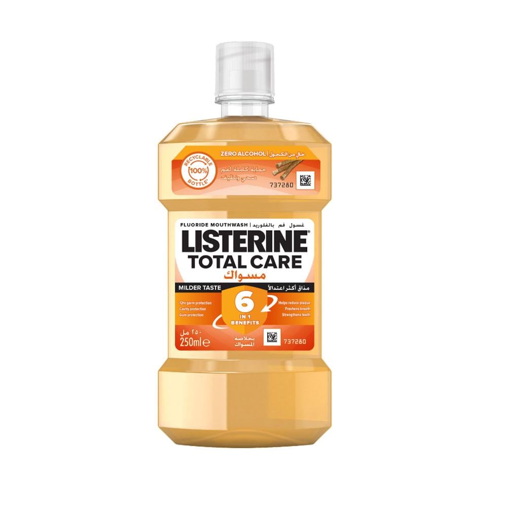 يُعد غسول الفم ليسترين حماية كاملة توتال كير بخلاصة المسواك خيارًا رائعًا للأشخاص الذين يبحثون عن غسول فم فعال وله مذاق طبيعي. يحتوي على مزيج من الفلورايد والزيوت الأساسية المستخرجة من المسواك، وهي مضادات طبيعية للميكروبات تقتل البكتيريا المسببة لرائحة الفم الكريهة والبلاك.