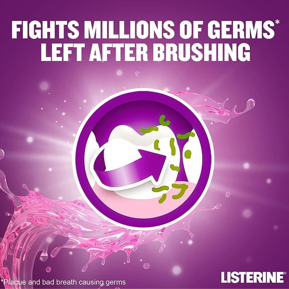 - يقتل 99.9% من البكتيريا الضارة التي تسبب تسوس الأسنان ورائحة الفم الكريهة.