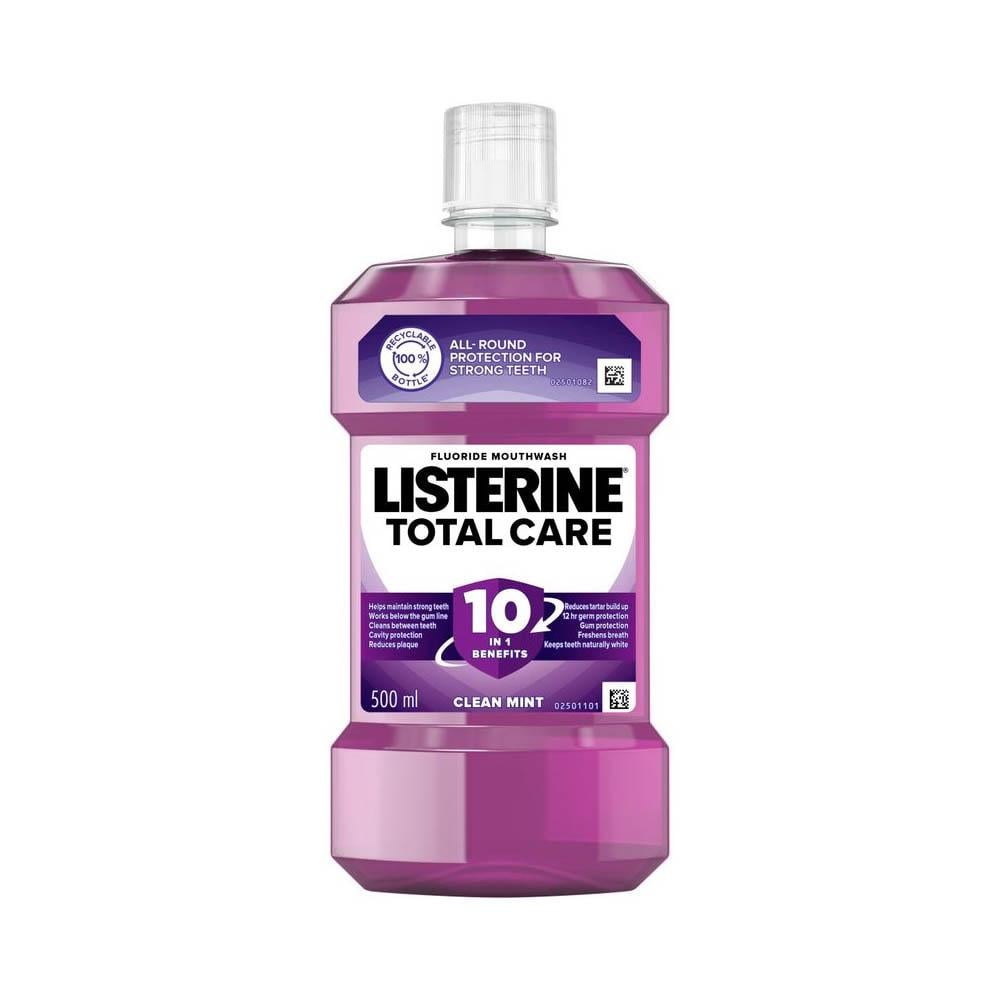 ليسترين توتال كير 10 في 1 غسول فم متكامل يوفر أقصى حماية لصحة الفم والأسنان بفضل تركيبته الفعالة التي تحتوي على مزيج من الزيوت العطرية المطهرة والفلورايد. يعمل على قتل البكتيريا الضارة، تقوية الأسنان، وحماية اللثة، مما يمنحك نفسًا منعشًا وفمًا نظيفًا يدوم طوال اليوم. يوصى به كجزء من روتين العناية اليومية بالأسنان لضمان حماية شاملة ضد التسوس، الجير، ورائحة الفم الكريهة.