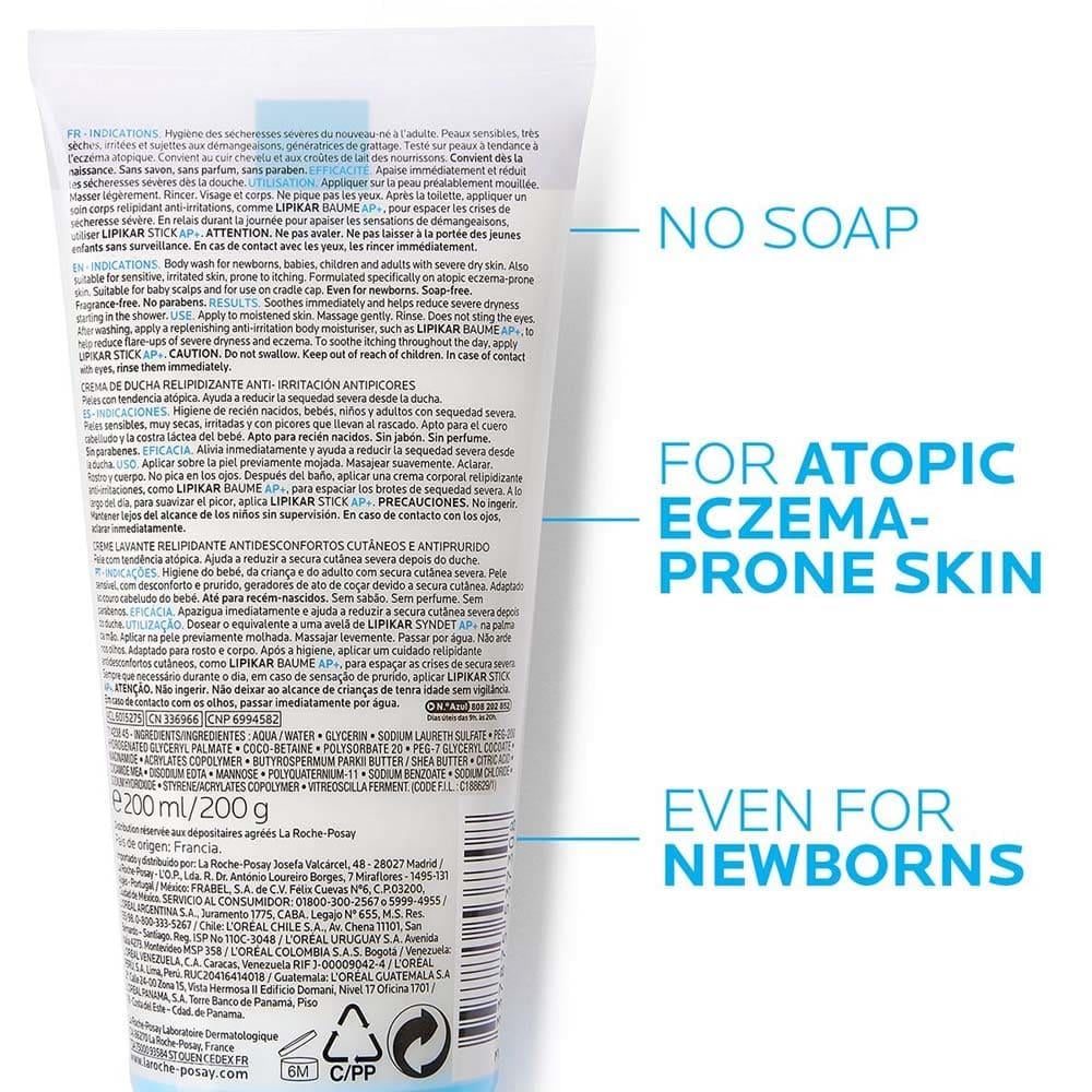 لاروش بوزيه ليبيكار سيندت +AP هو غسول كريمي لحديثي الولادة والرضع والأطفال والبالغين ذوي البشرة المعرضة للأكزيما مناسب للبشرة الحساسة والمعرضة للحكة مناسب لفروة رأس الرضع يعمل على تهدئة البشرة على الفورويساعد على تقليل الجفاف الشديد بدءًا من الاستحمام مناسب أيضًا للبشرة الحساسة والجافة جدًا والمعرضة للحكة تم اختباره تحت إشراف أطباء الأطفال و تم اختباره تحت إشراف أطباء العيون تحمل عالي أختبار الحساسية.