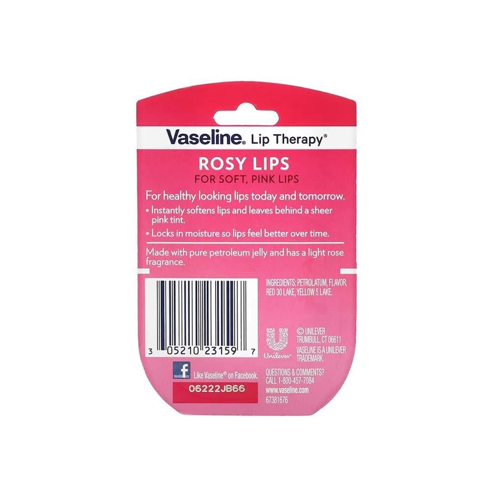 فازلين مرطب شفايف وردي روزي ليبس صُنع باستخدام Vaseline Jelly ، الذي يساعد في علاج الشفاه ومنعها من الجفاف عن طريق الاحتفاظ بالترطيب.