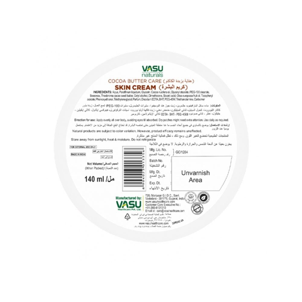 كريم العناية بالبشرة بزبدة الكاكاو من فاسو ناتشورالز هو منتج يعتني بالبشرة ويحسن حالتها. يحتوي على مزيج من زبدة الكاكاو، زيت الزيتون، وفيتامين هـ لتوفير ترطيب عميق وتغذية للبشرة.