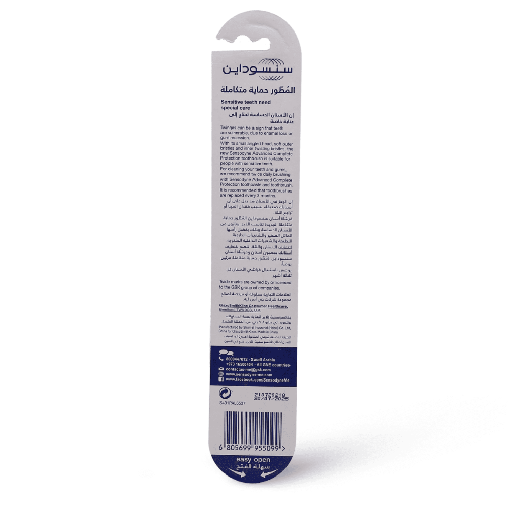 سنسوداين فرشاة أسنان المطور حماية متكاملة للأسنان الحساسة هي فرشاة أسنان متخصصة مصممة للأفراد ذوي الأسنان الحساسة. تم تصميمه خصيصًا للمساعدة في إصلاح وحماية المناطق الحساسة من الأسنان واللثة. تتميز فرشاة الأسنان هذه بشعيرات ناعمة لطيفة على الأسنان واللثة ، مما يقلل من خطر التهيج. تم تصميم الشعيرات أيضًا لتنظيف الأسنان بشكل فعال وإزالة البلاك ، مما يعزز صحة الفم بشكل عام.