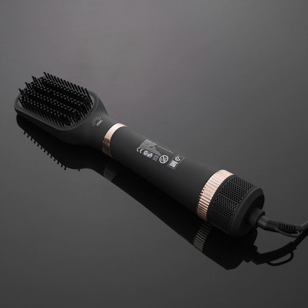 جهاز تصفيف الشعر من ريبون 2 في 1 عبارة عن فرشاة تدمج مجفف الشعر وسيراميك بحيث يعطي نتيجة فعالة لمظهر شعر مذهل ومتألق في أقصر وقت ممكن. كما تم إضافة تقنية الأيوانات بحيث تقوم بالإبقاء على ترطيب الشعر لتبقيه صحي خالي من التقصفات.