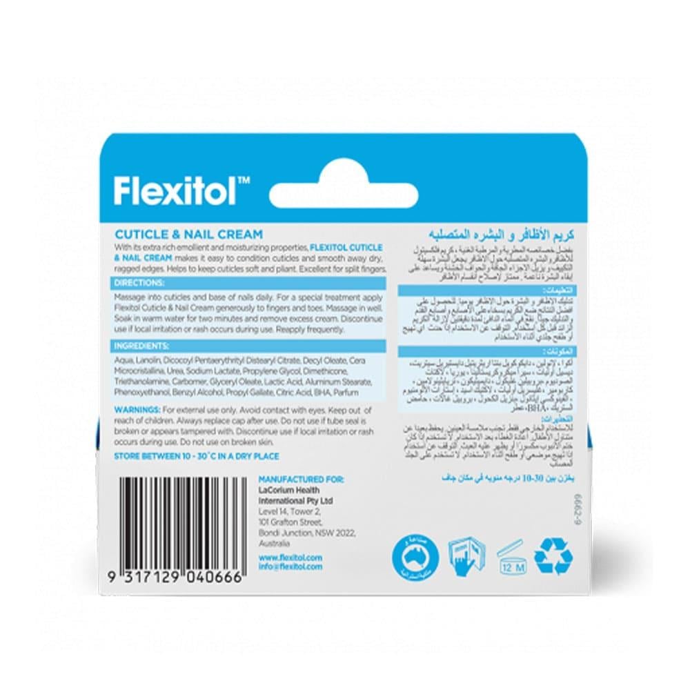 الوصف : فليكسيتول كريم هو منتج مصمم لترطيب وتقوية الأظافر والبشرة الخارجية المحيطة بها. يأتي في عبوة حجمها 20 جرام. الفوائد والمميزات :يحتوي على تركيبة غنية بالمواد المرطبة التي تساعد في ترطيب وتغذية الأظافر والبشرة.يساعد في تقوية الأظافر وزيادة متانتها.يعمل على منع جفاف البشرة المحيطة بالأظافر وتشققها.يحتوي على مركبات مغذية تعزز صحة وقوة الأظافر.يساعد في تحسين مظهر البشرة الخارجية للأظافر، مما يجعلها تبدو أكثر نعومة ومرونة. طريقة الاستعمال :قومي بتنظيف الأظافر والبشرة المحيطة بها بلطف وجففيها.ضعي كمية صغيرة من الكريم على الأظافر والبشرة المحيطة بها.دلكي بلطف حتى يتم امتصاص الكريم تمامًا. التحذيرات :للاستخدام الخارجي فقط.يحفظ في مكان بارد وجاف ، بعيداً عن أشعة الشمس المباشرة.