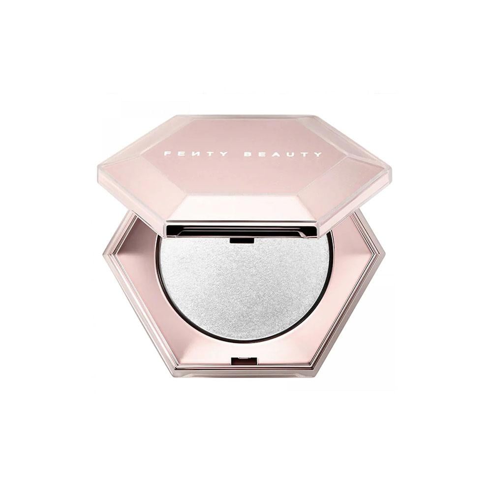 هايلايتر دياموند بومب هاو مني كاراتس من فنتي بيوتي يأتي بتركيبة بودرة هلامية ناعمة جدًا، مليئة بجزيئات لامعة دقيقة توفر لمسة من اللمعان الفائق. يمكن استخدامه على الوجه، العيون، والجسم للحصول على إشراقة متألقة في أي وقت.