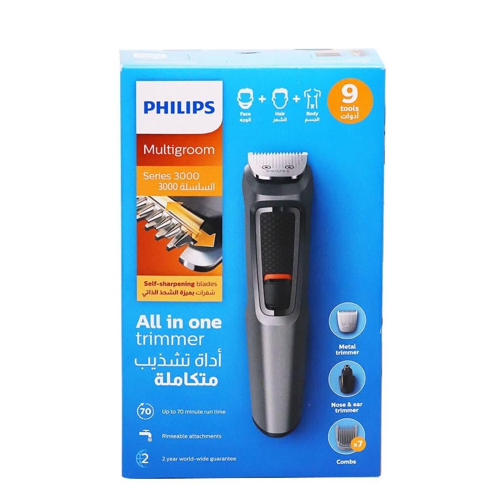 ماكينة حلاقة فيليبس 9 في 1 للجسم من سلسلة 3000، الموديل MG3747/13، هي أداة تصفيف متعددة الاستخدامات مصممة للعناية بالجسم والحلاقة بأشكال مختلفة.