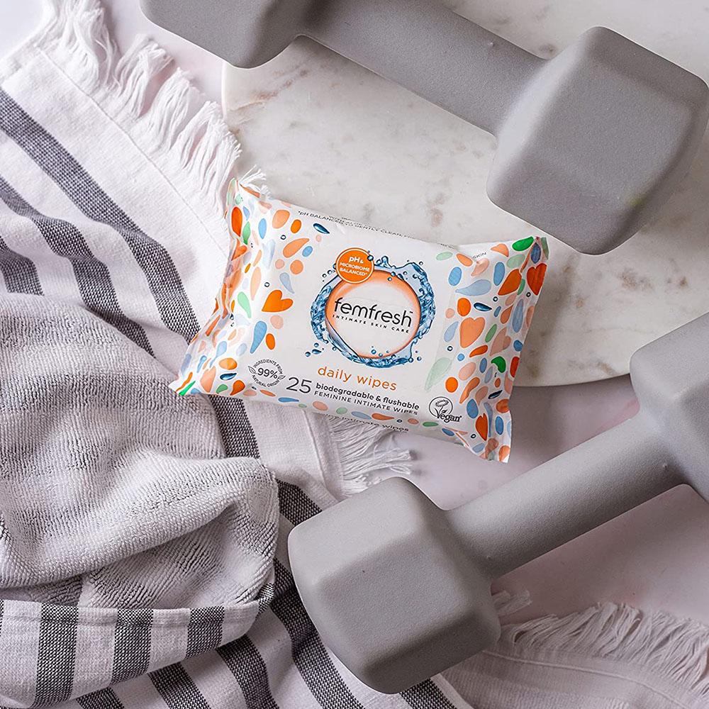 حافظي على بشرتك الحميمة نظيفة ومنتعشة ومتوازنة بدرجة الحموضة أثناء التنقل باستخدام مناديل Femfresh اليومية. تنظف مناديل Femfresh المبللة منطقتك الحميمة وتوفر نضارة تدوم طويلاً عندما لا يكون لديك ماء. مصنوعة من ركيزة قابلة للتحلل ، ويتم إنتاجها من مستخلصات الصبار وآذريون و 99٪ من المكونات الطبيعية. تعتبر مناديل Femfresh مثالية للانتعاش أثناء التنقل.