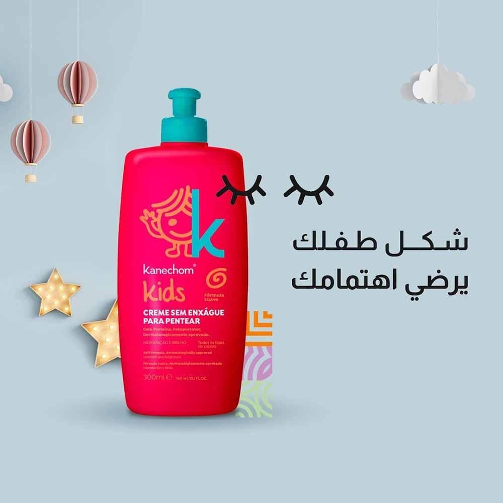 الوصف: كانشوم كريم التمشيط للأطفال يترك على الشعر هو منتج مخصص لتسهيل تمشيط شعر الأطفال وترطيبه. يحتوي على تركيبة فريدة تجمع بين فوائد تنظيف الشعر وترطيبه، مما يساعد في تحسين مرونة الشعر ويجعل عملية التمشيط أكثر سهولة. الفوائد والمميزات:صمم خصيصًا لجعل عملية تمشيط شعر الأطفال أسهل وأقل ألمًا.يحتوي على مرطبات تعزز ترطيب الشعر وتجعله ناعمًا ولامعًا.تصميم لطيف على فروة الرأس والشعر، مناسبة لبشرة الأطفال الحساسة.يتميز برائحة لطيفة ومنعشة تجعل تجربة الاستحمام ممتعة للأطفال.يعمل على حماية الشعر من التلف أثناء عمليات التمشيط.العبوة بحجم 300 مل تجعلها مناسبة للاستخدام المتكرر. طريقة الاستعمال:بعد غسل شعر الطفل بالشامبو، قومي بتجفيفه بلطف بمنشفة ناعمة.ضعي كمية مناسبة من كريم التمشيط على الشعر الرطب.قومي بتوزيع المنتج بشكل متساوٍ على الشعر باستخدام أصابعك أو فرشاة التمشيط.اتركي الكريم على الشعر دون شطف للحصول على فوائد الترطيب الإضافية.قومي بتمشيط الشعر بلطف باستخدام مشط واسع الأسنان. التحذيرات:للاستخدام الخارجي فقط.يحفظ في مكان بارد وجاف ، بعيداً عن أشعة الشمس المباشرة.يحفظ بعيداً عن متناول الأطفال.يرجى التوقف عن استخدام المنتج في حالة حدوث تهيج أو حساسية.