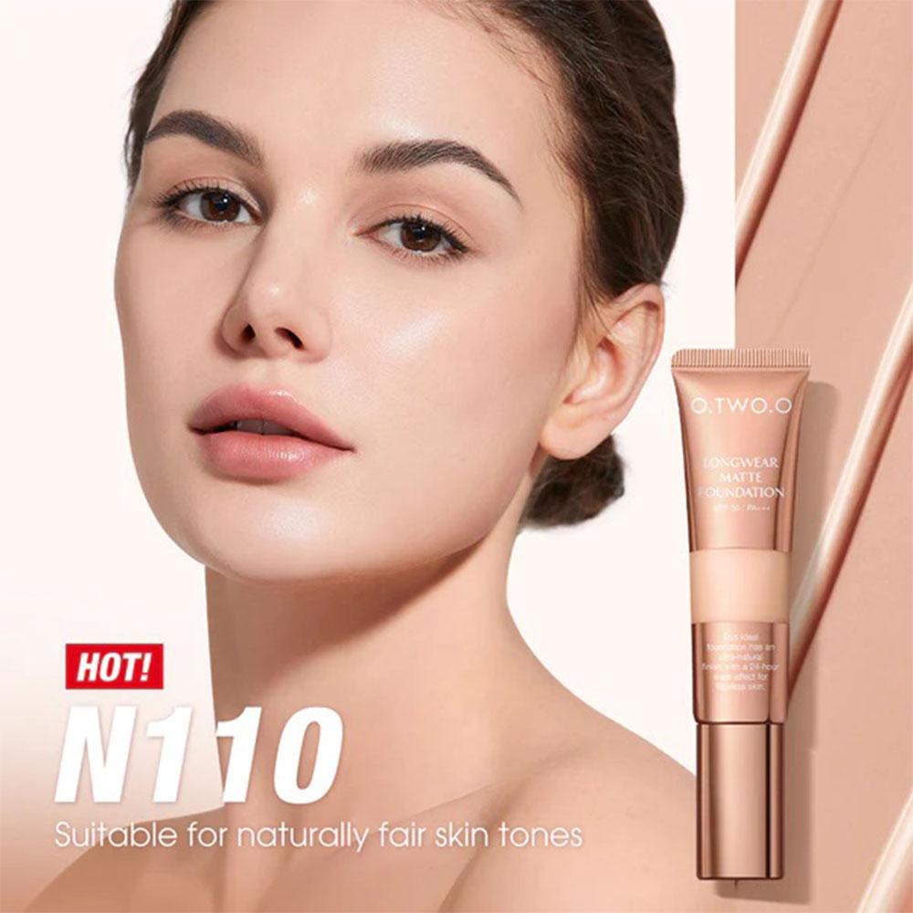 كريم الأساس غير اللامع طويل الأمد من أو تو أو مصمم لتوفير تغطية كاملة بملمس خفيف، مما يجعله مثاليًا للاستخدام اليومي أو المناسبات الخاصة. يقدم تركيبة تدوم طوال اليوم مع مقاومة للعرق والرطوبة والزيوت، مما يحافظ على مظهرك المثالي لساعات طويلة دون الحاجة إلى تعديل.
