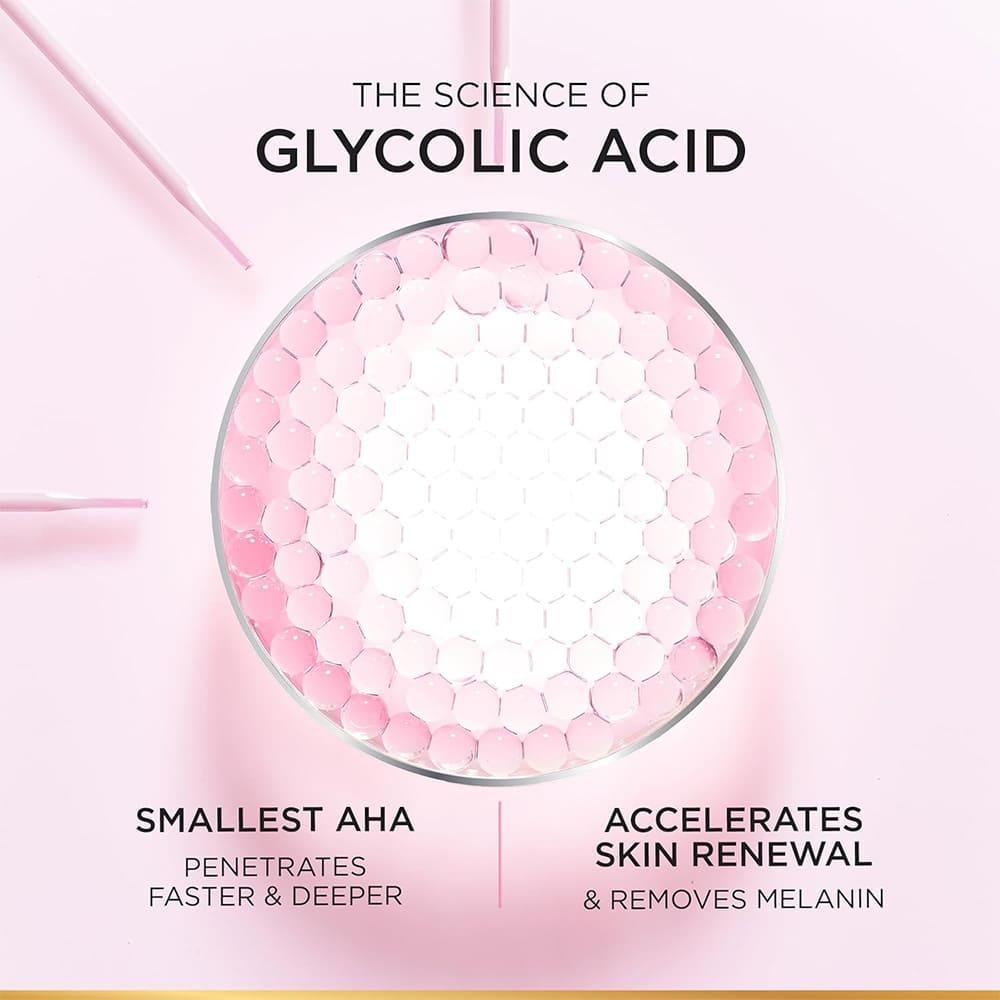 • تفتيح البشرة: يساعد حمض الجليكوليك على تقشير الخلايا الميتة وتقليل البقع الداكنة للحصول على بشرة متجانسة وأكثر إشراقة.