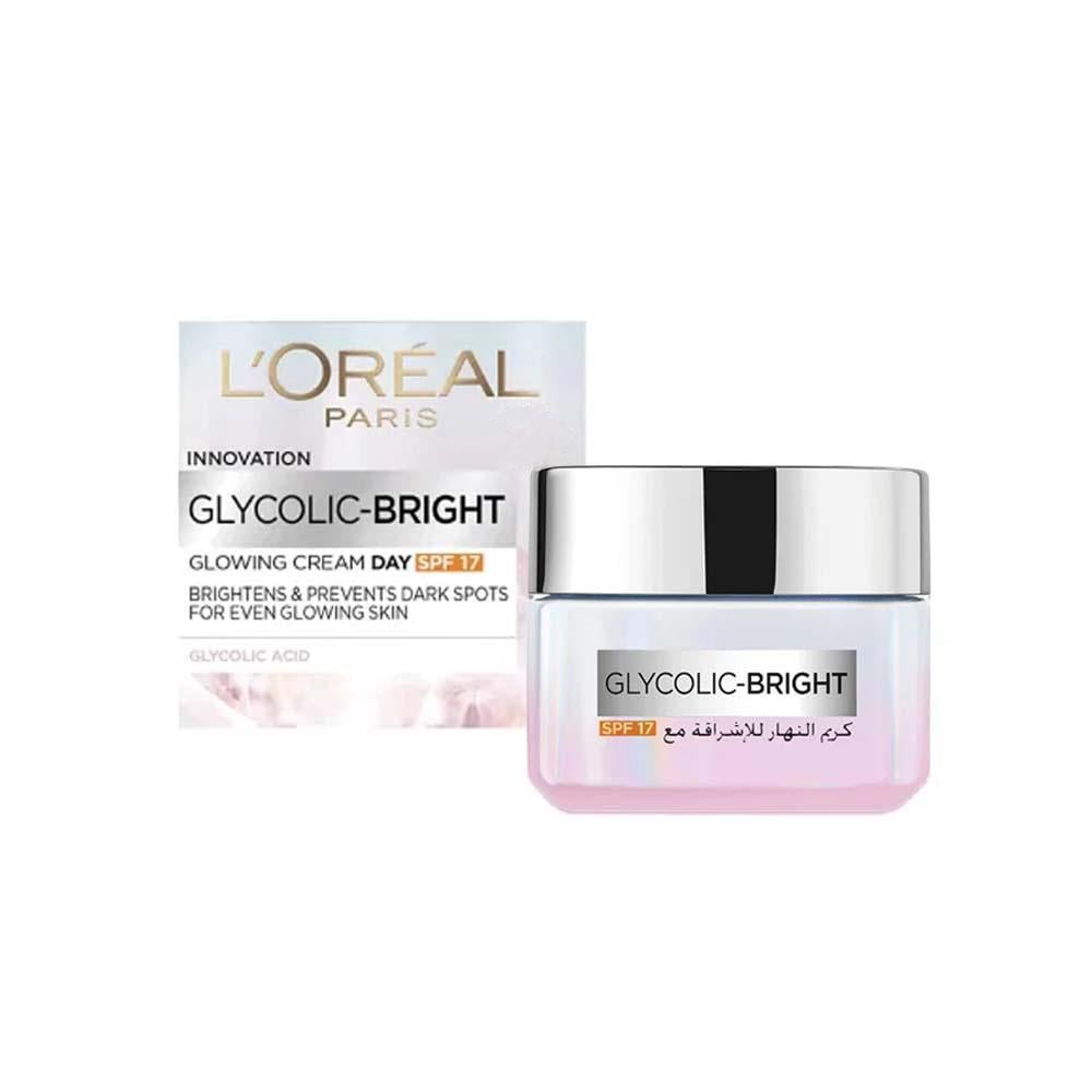 كريم النهار للإشراقة مع SPF 17 من Glycolic Bright هو كريم مصمم لتحسين إشراقة البشرة وحمايتها من أشعة الشمس الضارة. يحتوي على مكونات فعالة تعمل على تجديد خلايا البشرة ومنحها مظهرًا مشرقًا وصحيًا. كما يحتوي على حماية من الشمس بعامل حماية SPF 17، مما يساعد في حماية البشرة من أضرار الأشعة فوق البنفسجية.