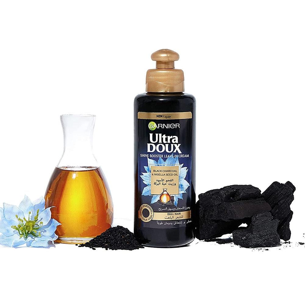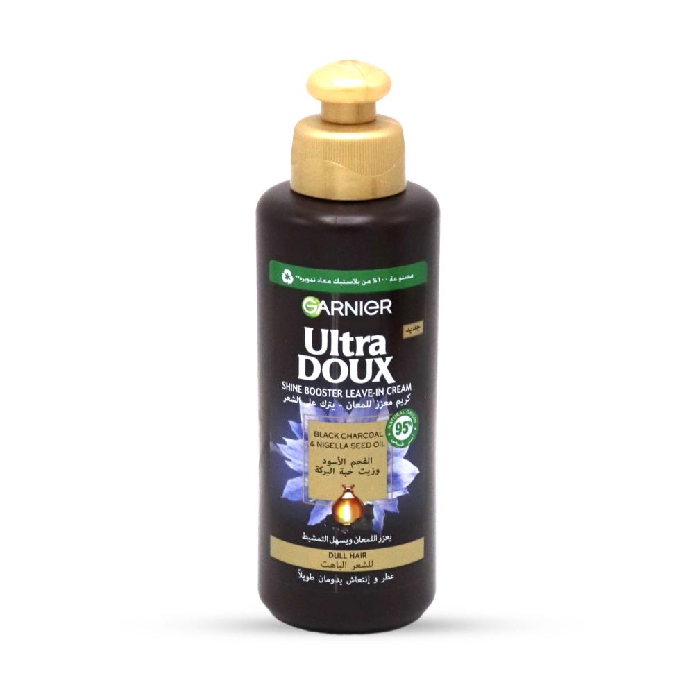 كريم ألترا دو بالفحم الأسود وزيت حبة البركة الذي يترك على الشعر و المقدم إليكِ من غارنييه، يعد وصفة حقيقية لتعزيز لمعان الشعر وتسهيل تصفيفه. منتج يجمع بين زيت حبة البركة، المعروف أيضاً بالحبة السوداء، وهو مكون طبيعي ثمين معروف بترطيب الشعر واستعادة لمعانه، والفحم المعروف بخصائصه المنقية، في قوام كريمي طبيعي خالِ من السيليكون بدون إرهاق شعرك.