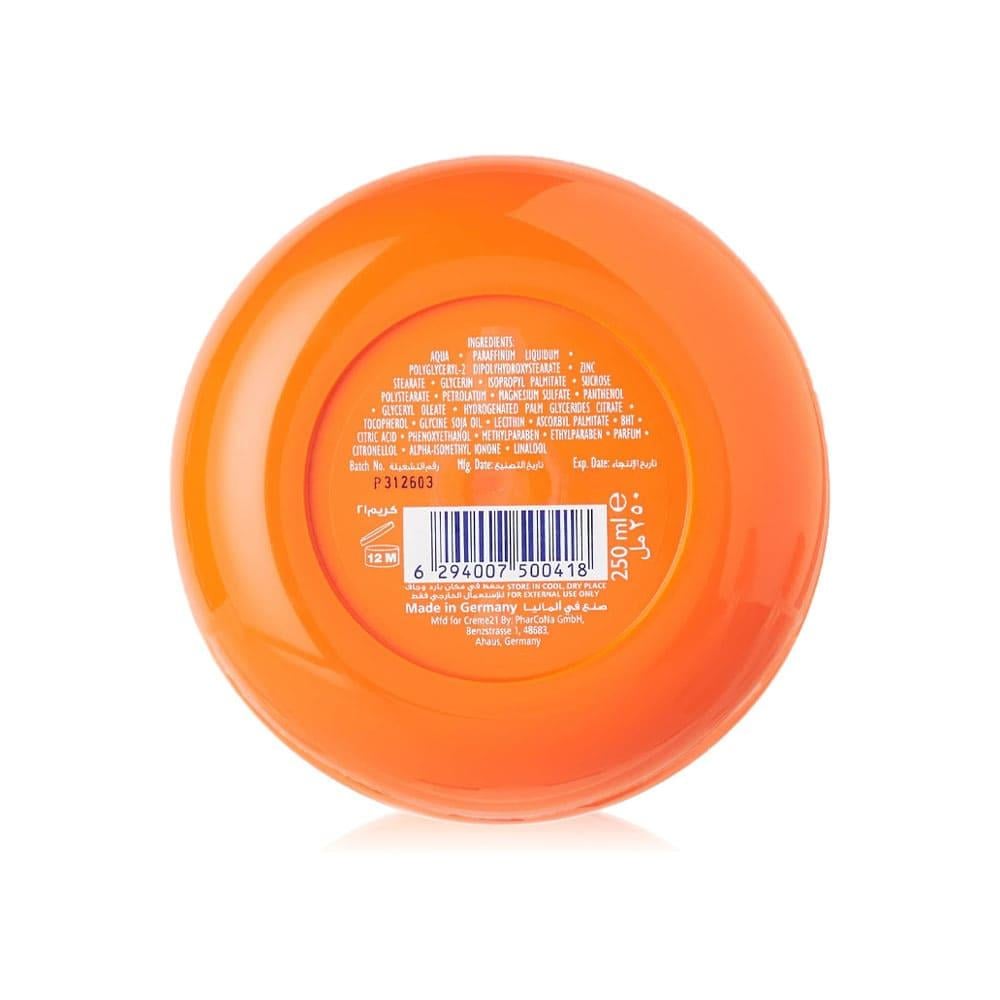 كريم 21 هو كريم مرطب متعدد الاستخدامات يحتوي على فيتامين E المعروف بفوائده المرطبة والمغذية للبشرة. يمتاز هذا الكريم بتركيبته الخفيفة وسرعة امتصاصه، يعمل على ترطيب البشرة الجافة وتغذيتها، مما يساعد على منع جفافها وظهور التشققات.