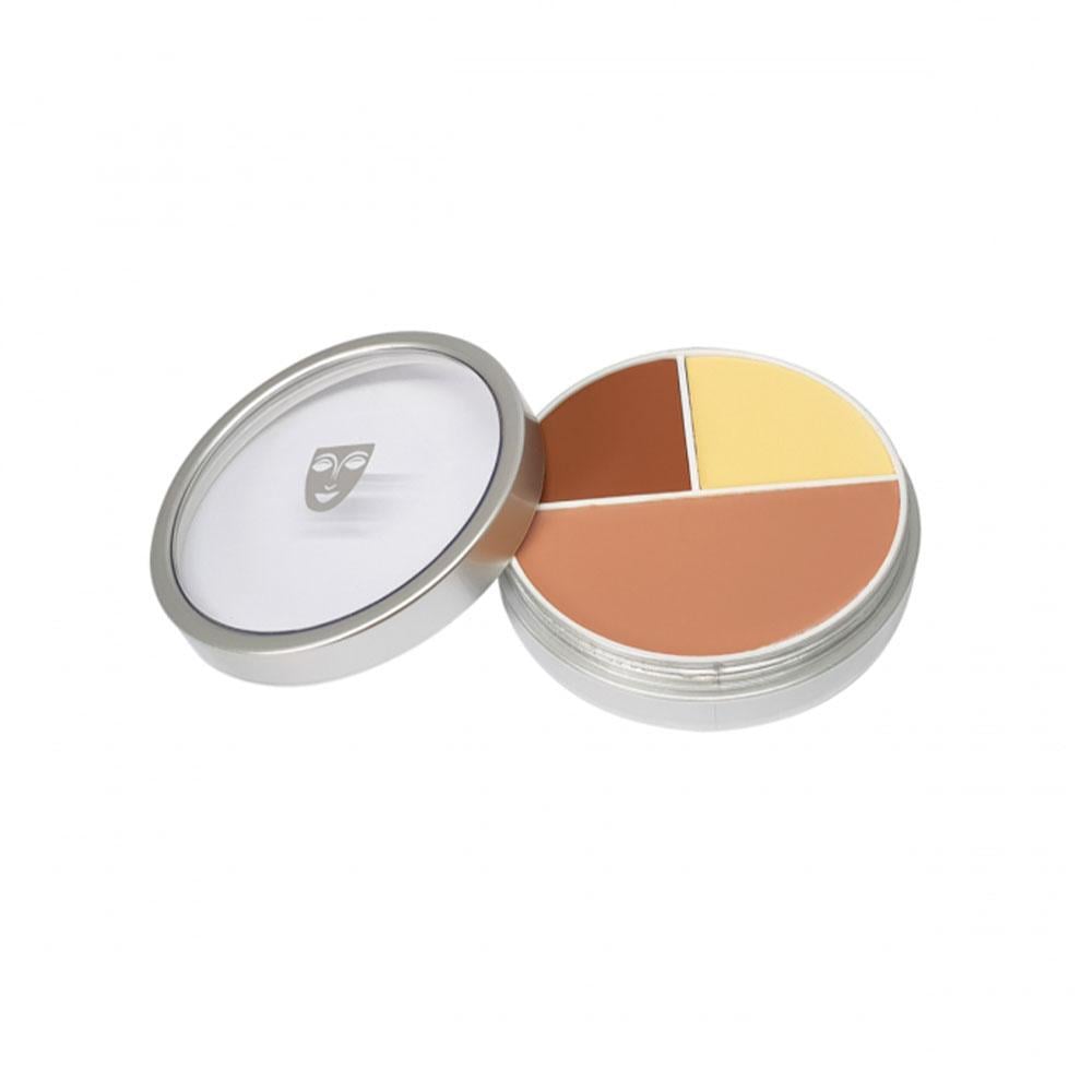 الوصف:عبارة عن كريم أساس كريمي ثلاثي يتكون من ثلاث ألوان بدرجات مختلفة و اللون الأول و هو الأساسي و هو بلون يناسب البشرة المتوسطة ،بالإضافة إلى لونين آخرين أحدهما فاتح و الآخر داكن و هما لوظيفة الكونتور المحدد للوجه ، يمكنك أن تستخدمي لون واحد أو أكثر من لون لتخدم متطلباتك في تدرج لون بشرتك ، تنساب بكل سهولة و تمتزج مع لون بشرتك و تمنحك تغطية عالية ، تناسب جميع أنواع البشرة ، متوفرة بحجم 40 جراممكونات المنتج:تحتوي على كابريليك كابريك تراي جليسريد ، أوكتيلوديكانول ، سيتيل بالميتات ، بترولاتوم ، كاولين ، كانديللا سيرا شمع إفوربيا سيريفيرا كانديللا ، سي 18-38 ، ألكيل هيدروكسيستيرويل ، كوبرنيكيا سيريفيرا كوبرنيكيا سيريفرا كارنوبا ، قد تحتوي على ثاني أكسيد التيتانيوم ، أكاسيد الحديد، الكروم ، قد يحتوي على القرمزي كلون اضافيطريقة الإستخدام:قومي باستخدام اسفنجة كريم الأساس بعد أن تقومي بوضع كريم الاساس بأطراف أصابعك على البشرة ، استخدمي اللون الفاتح في اضاءة الوجنتين و الجبهة و استخدمي اللون الداكن في تحديد عظام الوجه و اعملي على توزيع الثلاث ألوان لتتمازج سويا و أكملي مكياجك