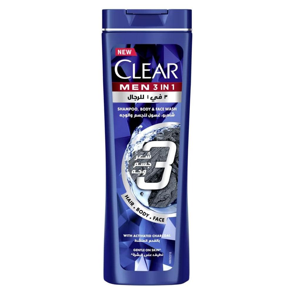 كلير للرجال 3 في 1 شامبو وغسول للجسم والوجه بالفحم المنشط – 200 مل