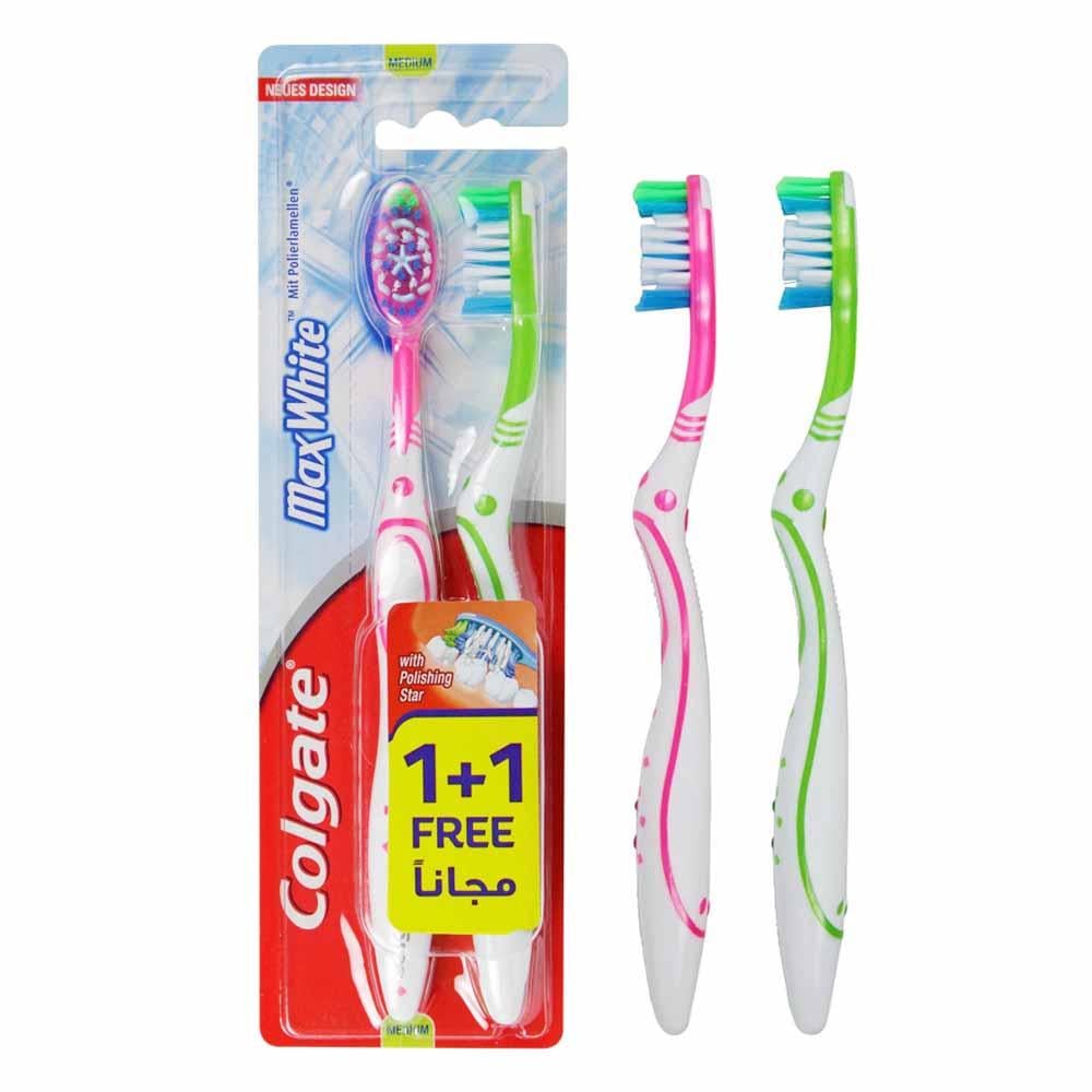 كولجيت ماكس وايت متوسطة النعومة فرشاة أسنان متطورة تم تصميمها خصيصًا لتوفير تنظيف عميق وتعزيز بياض الأسنان الطبيعي. تحتوي على شعيرات متوسطة الصلابة مع رؤوس مميزة تساهم في إزالة البقع السطحية والبلاك بلطف. تأتي في عبوة اقتصادية تضم فرشاة إضافية مجانية لتوفير قيمة مثالية للمستخدم.