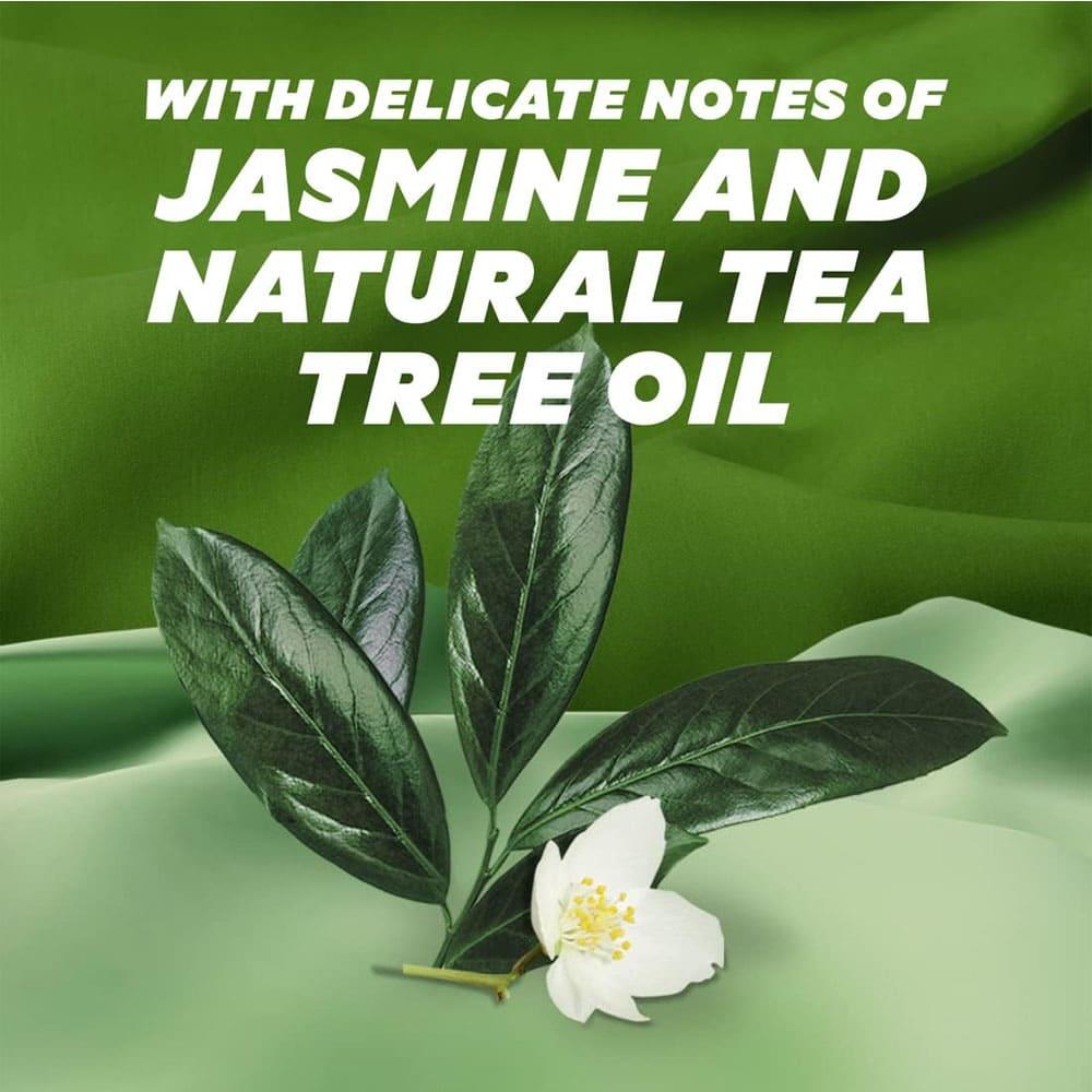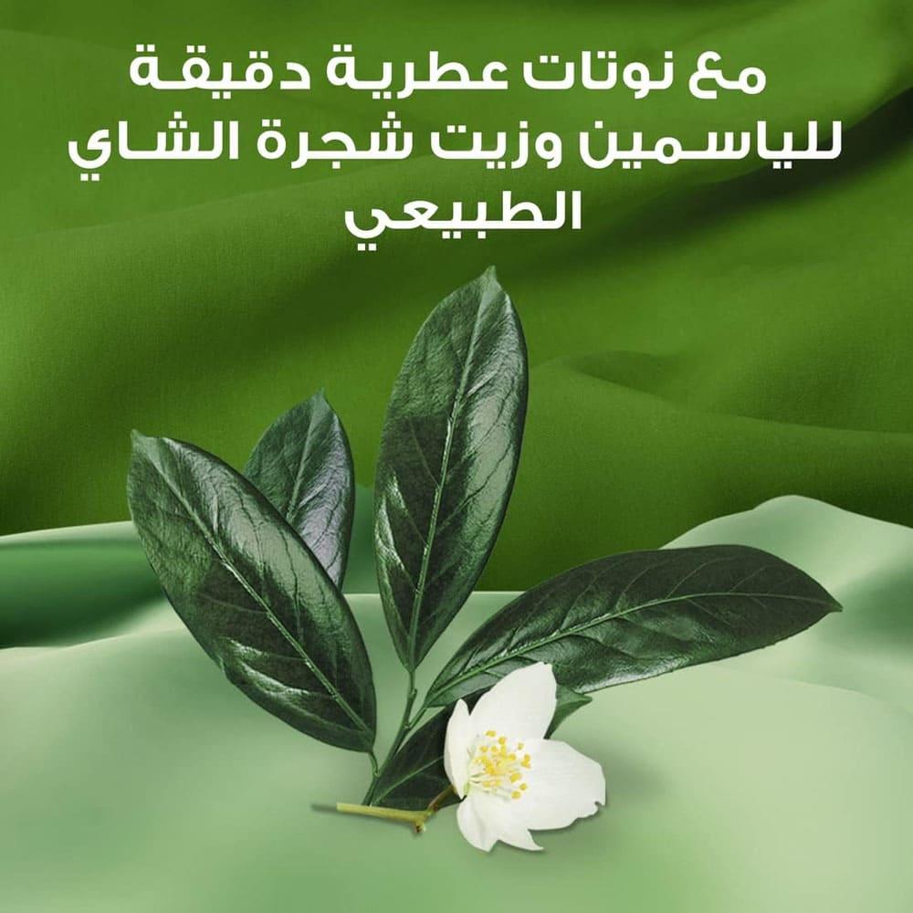 - يحتوي على زيت شجرة الشاي لإضافة رائحة منعشة ومنعمة للملابس.